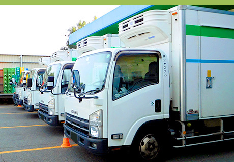 大手コンビニのチルド商品をメインとする配送を行っていますが、チルドライン輸送の名糖運輸グループ企業のネットワークを利用することによって、北は仙台。南は福岡までの3温度帯(チルド・ドライ・フローズン)輸配送を顧客の要求を満たす車輌、人材により365日、24時間提供が可能です。